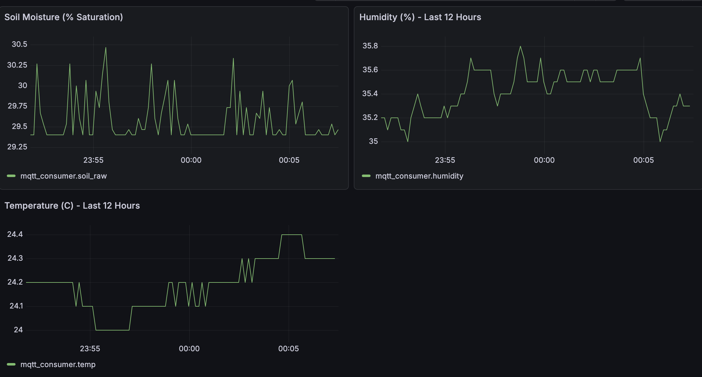ESP32 firmware that collects plant health data and streams it over MQTT to a Grafana dashboard.